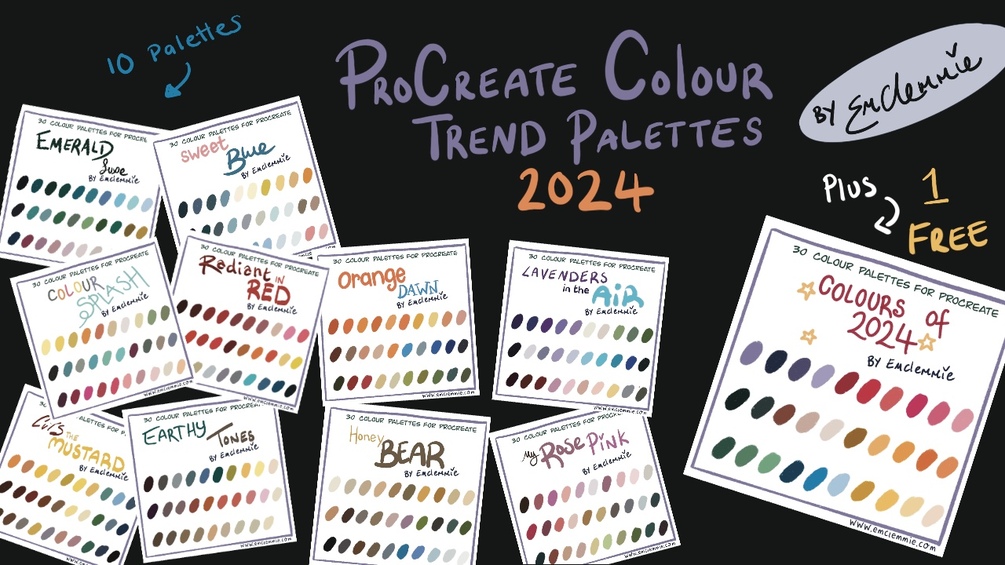 Each is designed to work together to create illustrations, dark, mid, light tones and some neutral colours to balance. Alongside colour pops and contrasting colours to create visually appealing illustrations.